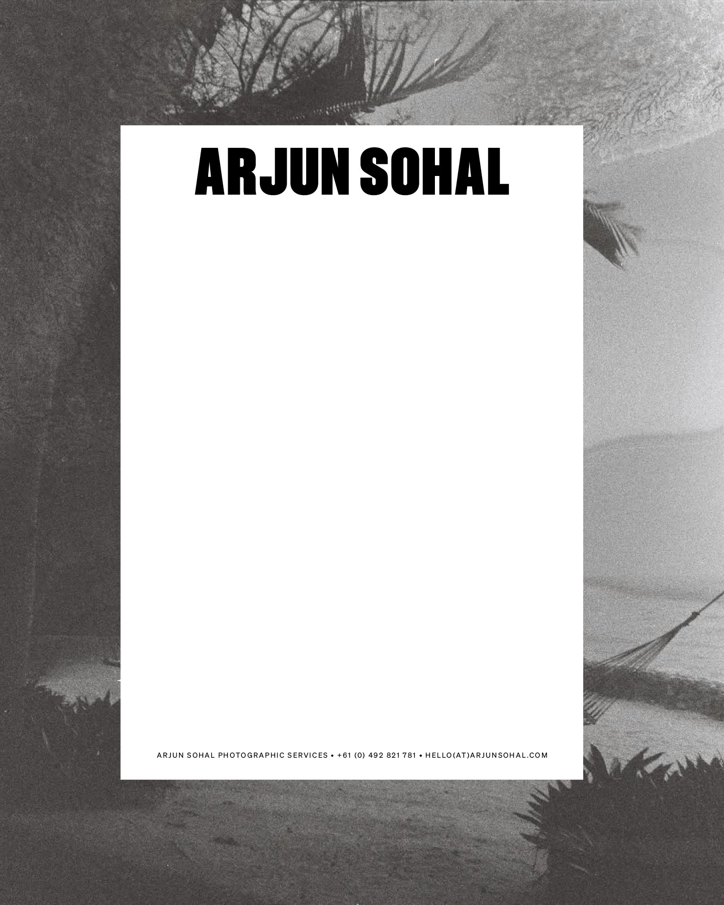 Arjun Sohal is a Melbourne-based photographer whose work captures quiet, observational moments with emotional depth and clarity. Neue Graphic was commissioned to design a visual identity that reflects Arjun’s refined, minimal approach to storytelling while complementing the timeless, human quality of his imagery.